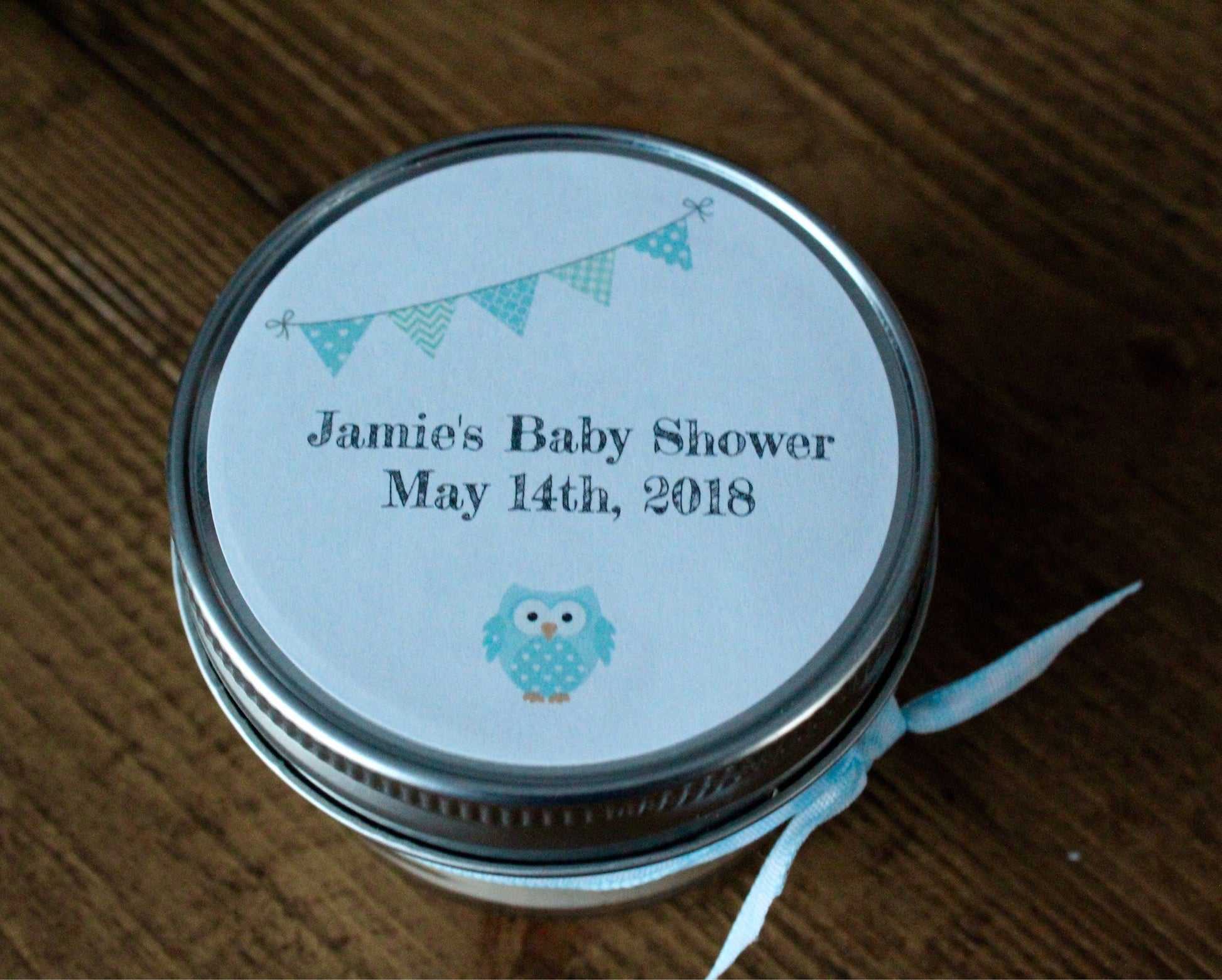 -Label personalization, includes a Blue baby owl theme label, names and date can be included on labels. Please put personalization info in “notes to seller” at checkout