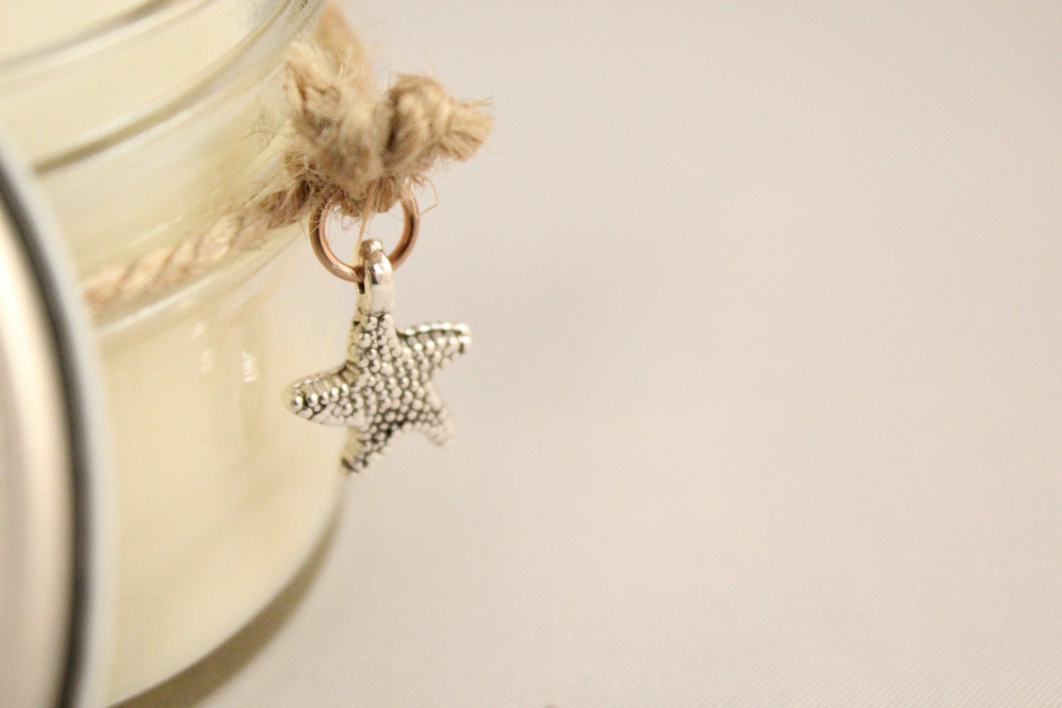 -A 4oz glass candle jars with lids, secured with twine and a starfish charm
