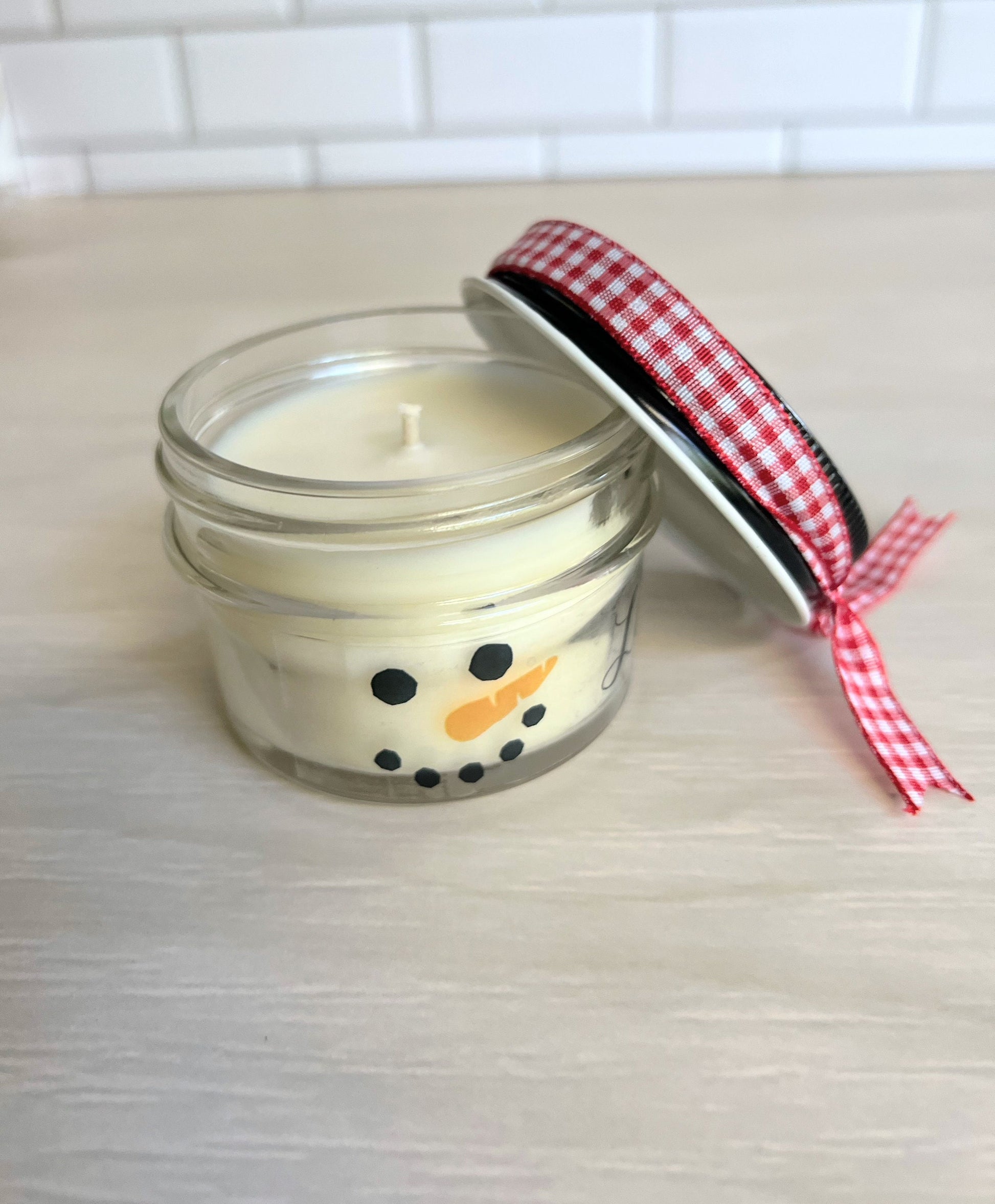 Our 4oz snowman holiday soy candles come in a variety of holiday Scents. Each handpoured soy candle is made is phthalate free fragrance and burns clean for 20 hours. Adorable snowman face labels and a ribbon “scarf” on the lid. Perfect small gift for teachers, holidays hostesses or even holiday parties!