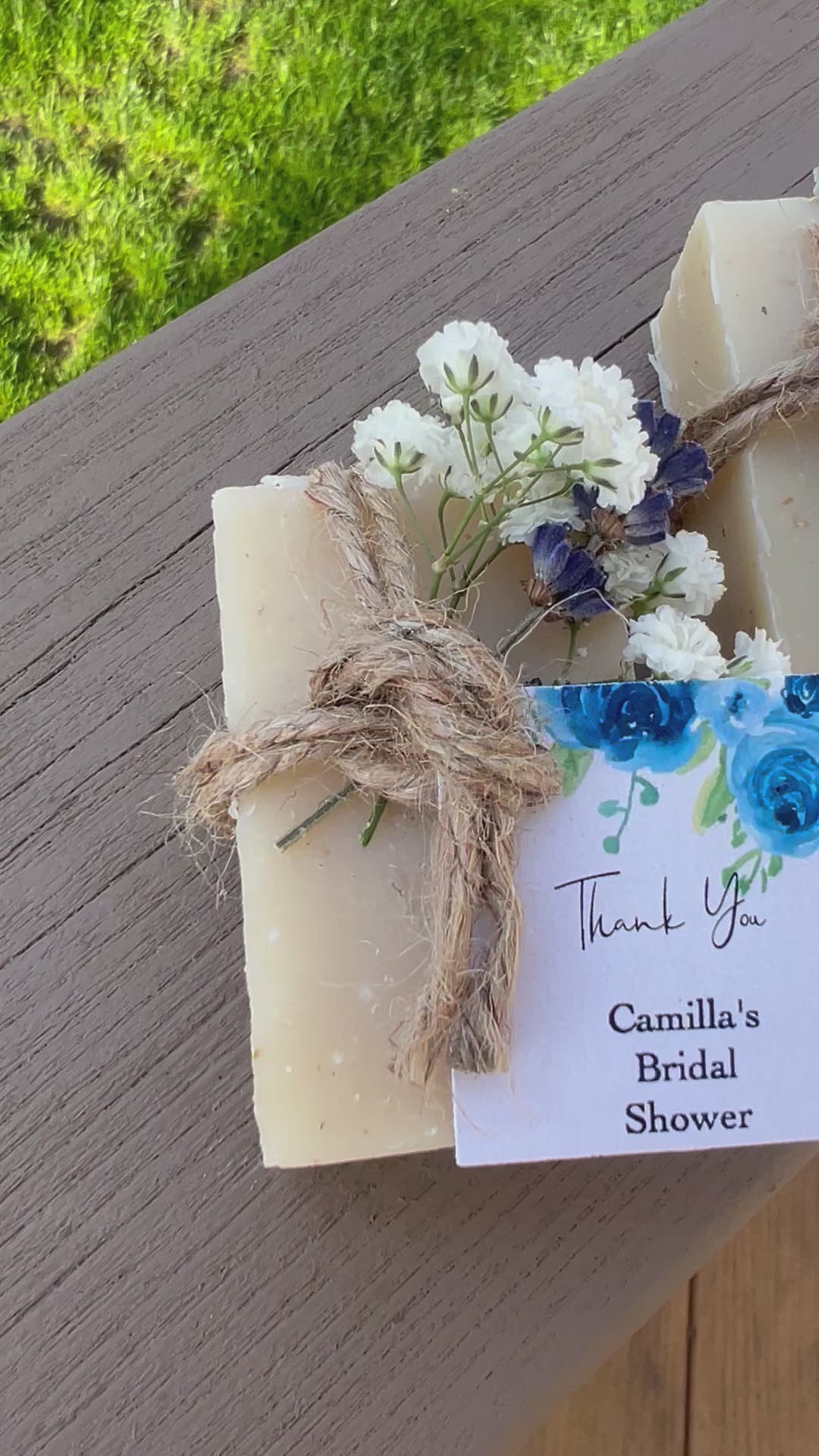 These beautiful guest sized 2.3 oz soap favors are handmade the old fashioned way with vegetable based oils, scented with either essential oil or pthalate free fragrance and finished with colorful botanicals or oats (for our oats n honey soap!) Perfect no waste event favors.